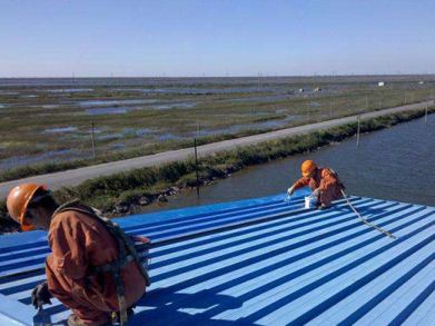在施工前仔細(xì)檢查彩鋼屋面,確保金屬屋面牢固、清潔、無(wú)銹蝕、無(wú)異物。不符合上述條件的,按下列規(guī)定處理: